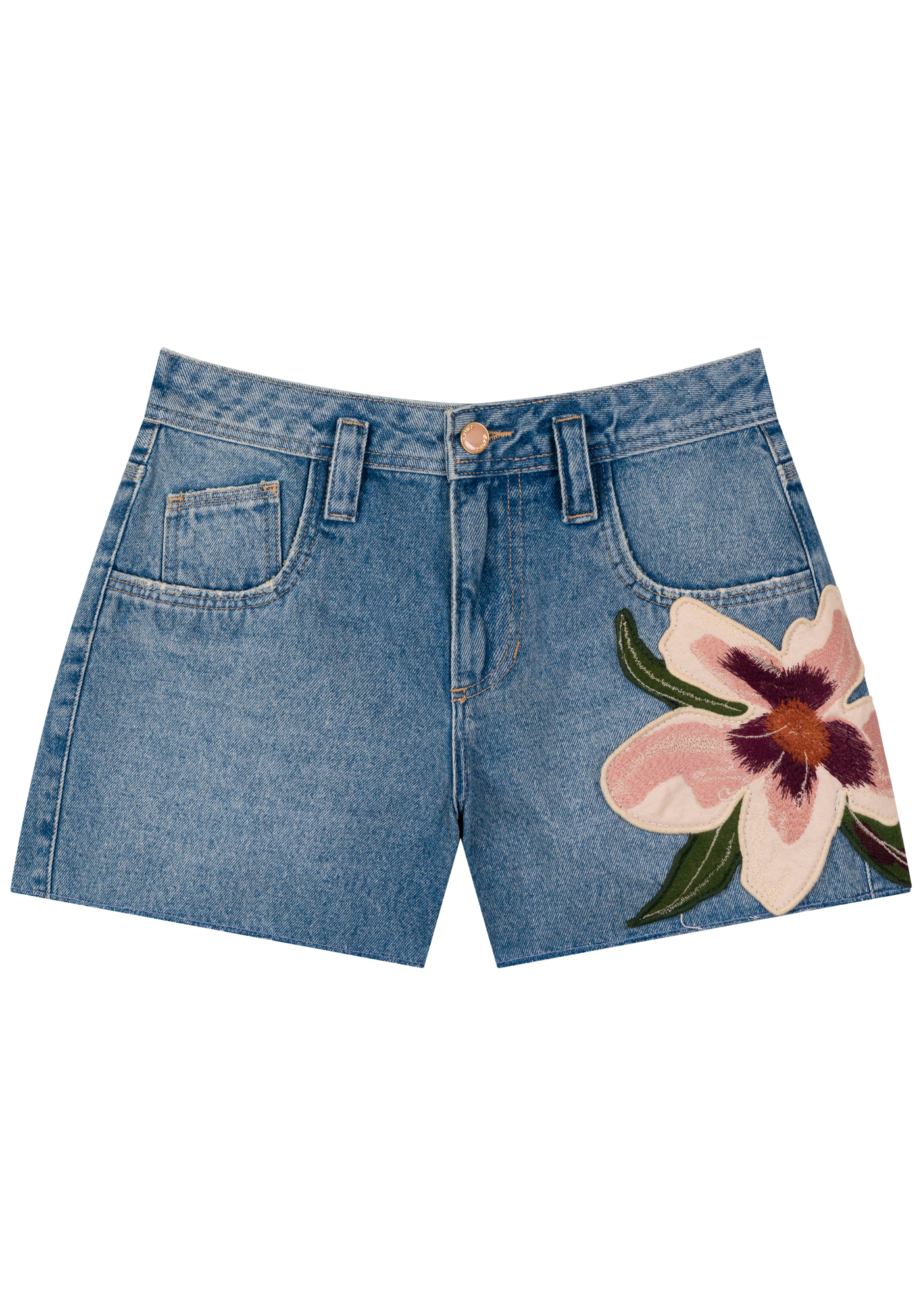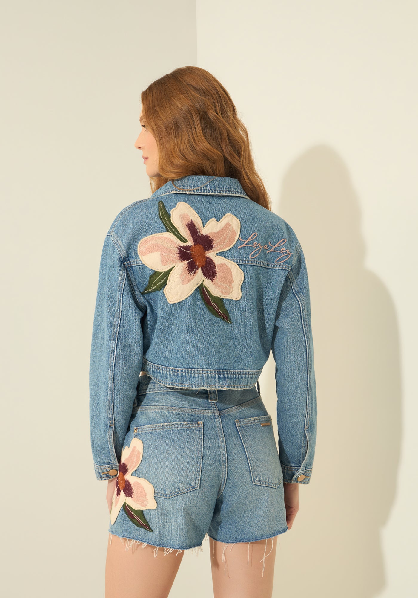 Réalisé en denim authentique, il se pare d'un écusson brodé représentant une maxi fleur, signature de la collection qui exprime liberté et caractère.