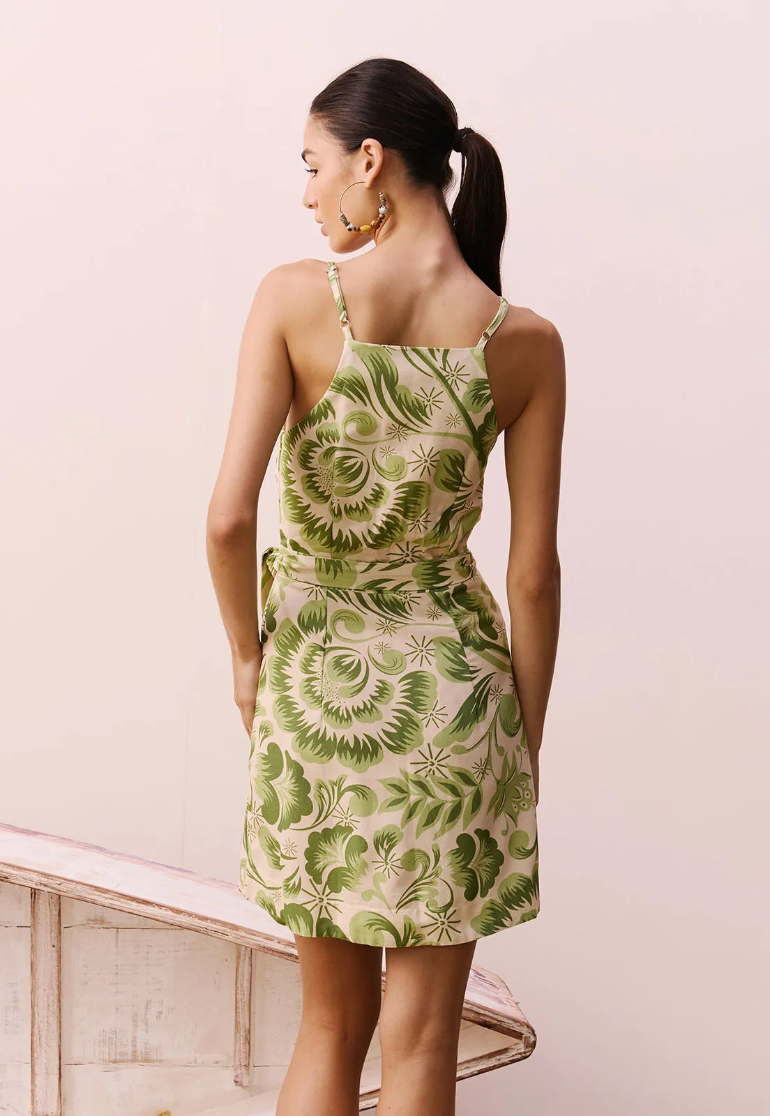 Ses fines bretelles ajustables et son décolleté en V croisé mettent délicatement en valeur la poitrine, tandis que son imprimé floral organique apporte une touche artistique et intemporelle.