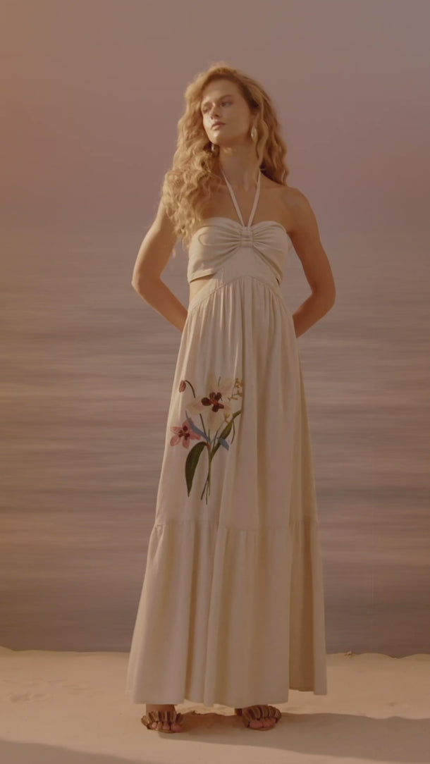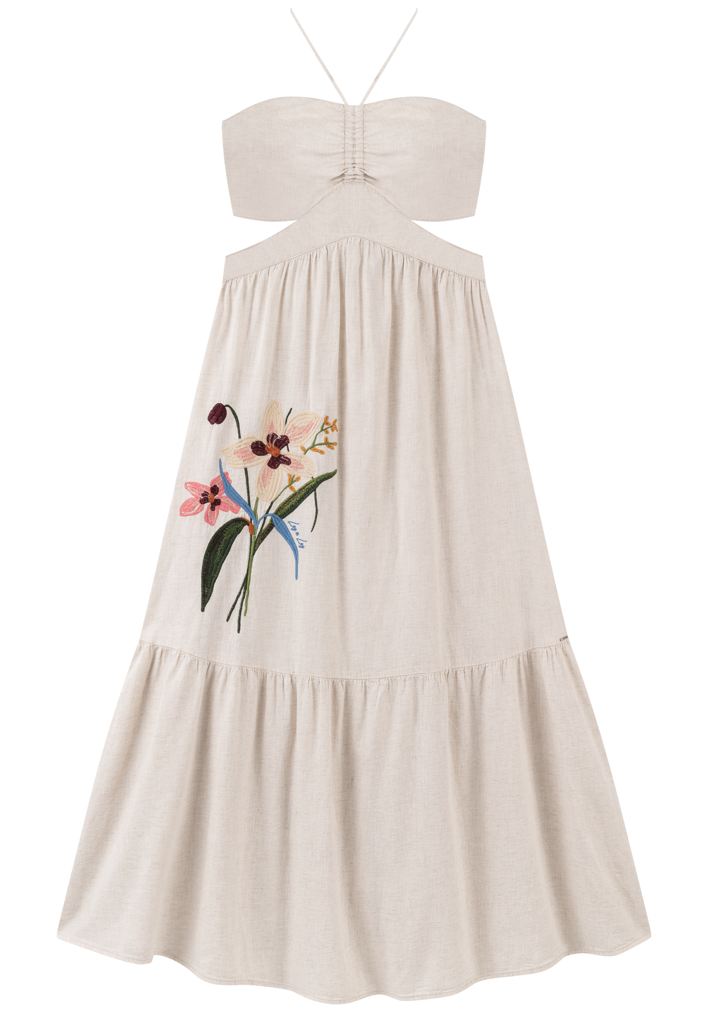La robe JARDIM natural respire l'élégance décontractée avec sa composition en lin sergé parfaite pour les journées ensoleillées.